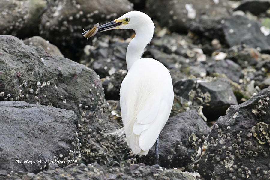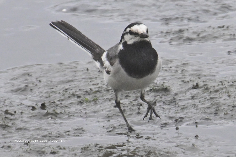 2025年の梅雨は6月10日に関東地方の梅雨入りが発表されたものの、2日ほどでこれから晴天が続くという予報。こんな時期天候は朝まで降っていましたが、出発する頃には、小雨が降ってきました。といっても予報では天気が回復するということでした。梅雨の期間に晴れ間が出ると高温多湿になり、衣服内はとんでもないことになります。しかしこの公園にはネイチャーセンターがあり、この様な天候や猛暑、豪雨など、我慢できなくなったら避難できます。 到着時には、時々小雨がパラパラという状況でしたが、傘を差すまでありません。写真撮りにとって雨の天候は、片手がふさがるので、厳しい状況になります。 ここの東は東京湾につながっていますが、園内には潮色の池があり、潮の干満によって池の水が給排水される地形になっています。到着してしばらくすると引き潮になってきて海面が下がり、それに連れて池の水面下がってきて池の南北にある水路から池内の水が排出されてきます。 右上のコサギは南側の水路で排水される水と共に流れ出してくる小魚を暫く騎士で待ち構えていましたが、ハゼの様な少し大きめな魚を捕まえた時の画像です。 鳥の中にも学習能力が高いものは環境の変化を察知して待ち構えて魚を捕まえる行動をするものをよく見かけます。下の画像のダイサギは、暫く餌を探していましたが、諦めて移動してしまいました。多摩川上流にいたダイサギは魚に気づかれない様に流れの下流から近づきたくさんの魚(カジカ)を捕まえていました。このページには、下流にいたアオサギも写していますが、餌に出会えなかった様です。