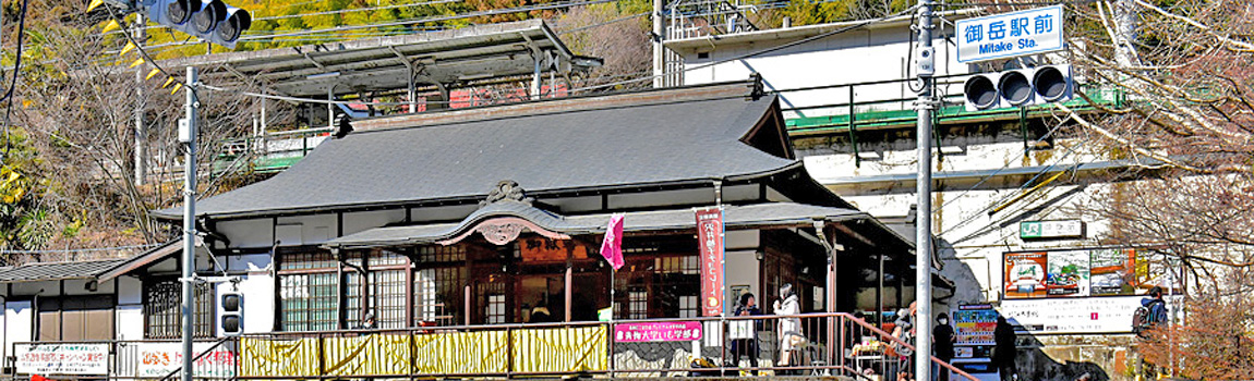 青梅線の屈指の観光スポット「御岳駅」 移 動: 観光地にあるJR青梅線「御岳駅」 御岳駅の駅舎 魅力的な自然豊かな御岳山エリア 自然豊かな御岳渓谷遊歩道 遊歩道エリアにある水力発電所 リンク: JR青梅線の駅と周辺 御岳渓谷周辺コース JR青梅線の各駅と駅周辺 白丸ダム/鳩ノ巣駅周辺の観光 鳩ノ巣駅 昭和19年開業 大多摩ウォーキングトレイル 御岳登山鉄道 2018 春の日立中研庭園開放日 観光地にあるJR青梅線「御岳駅」 トップへ JR青梅線の観光地は所どこらありますが、中でも御嶽山を南に控えた御嶽駅が屈指の観光スポットです。御嶽山へに向かうには、徒歩と西東京バスの2通りあります。徒歩は駅前の青梅街道を西方面に歩き、大きなカーブの先に「御嶽山登山口の白い立て看板があります。ここを入り「神路橋」を渡り進むと、吉野街道に突き当たり、正面に御岳山の参道の赤い大きな鳥居が見えてきます。