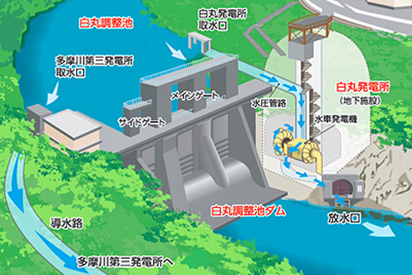 御岳渓谷遊歩道エリアにある水力発電所 トップへ 多摩川の発電所は4つありますが、この発電所は最下流にある施設です。一番上流側は、小河内ダム直下にある「多摩川第一発電所」、海沢にある「氷川発電所」、白丸調整池(白丸ダム)もある「白丸発電所」で、最後がこの「多摩川第三発電所」となります。 この多摩川第三発電所は、白丸ダムの取水口から山中を通り、この発電所に送られてきます。多摩川にある発電所の発電量は、小河内ダムの多摩川第一発電所が最大出力 19,000キロワットでトップで、この多摩川第三発電所が最大出力 16,400キロワットとなっています。これに続き氷川発電所が最大出力 8,200キロワット、白丸発電所は最大出力 1,100キロワットとなっています。 リンク:多摩川上流部にある地域を賄う4つの発電所移 動: 観光地にあるJR青梅線「御岳駅」 御岳駅の駅舎 魅力的な自然豊かな御岳山エリア 自然豊かな御岳渓谷遊歩道 遊歩道エリアにある水力発電所 リンク: JR青梅線の駅と周辺 御岳渓谷周辺コース JR青梅線の各駅と駅周辺 白丸ダム/鳩ノ巣駅周辺の観光 鳩ノ巣駅 昭和19年開業 大多摩ウォーキングトレイル 御岳登山鉄道 2018 春の日立中研庭園開放日 |