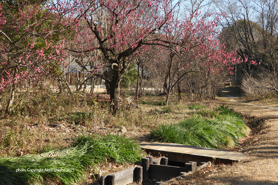 この所、雨量が少なく行動には向いた天気ですが、野菜の発育に影響を与えています。 着々と春に向かう園内 トップへ 上の画像は、東京港野鳥公園の自然観察園内の景色で、二月になると園内の梅が咲き始めます。画像内に流れる小川は通常なら流れが陽に反射してキラキラしていたものですが、現在は雨不足で干上がっています。
