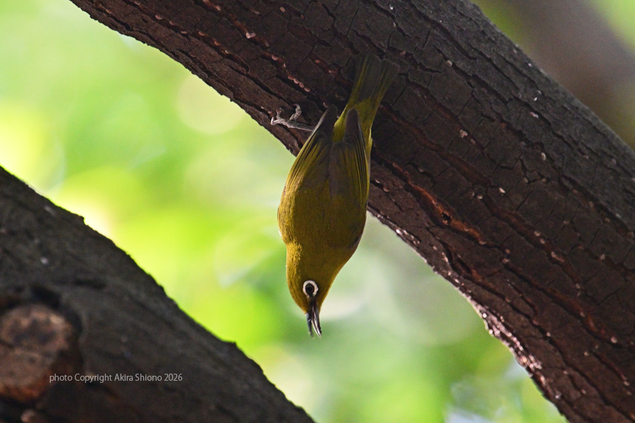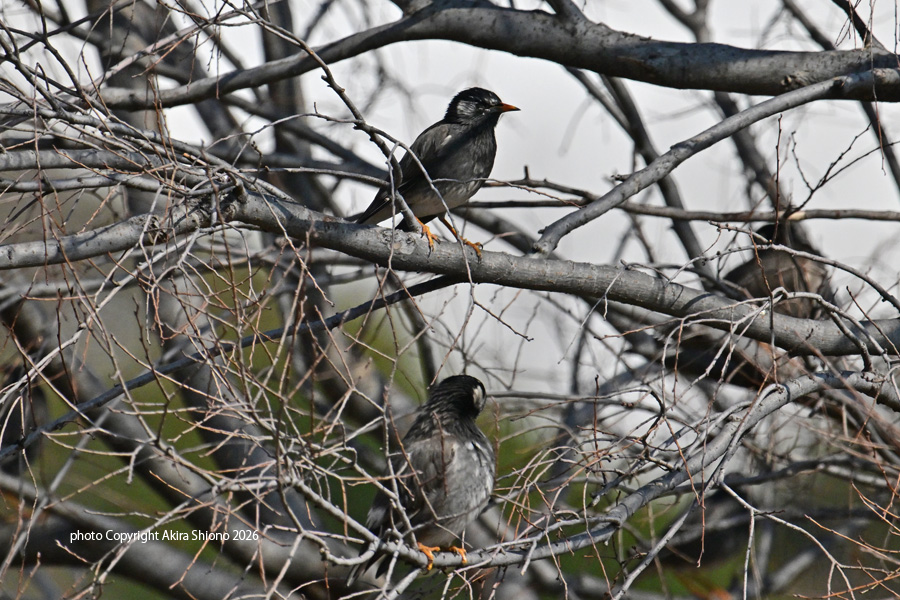 逆さに留まって餌を探すメジロ、枯れ枝に留まるムクドリ、200m程先の枯れ枝に留まるノスリ 撮影:NIKON COOLPIX P1100 200mm |