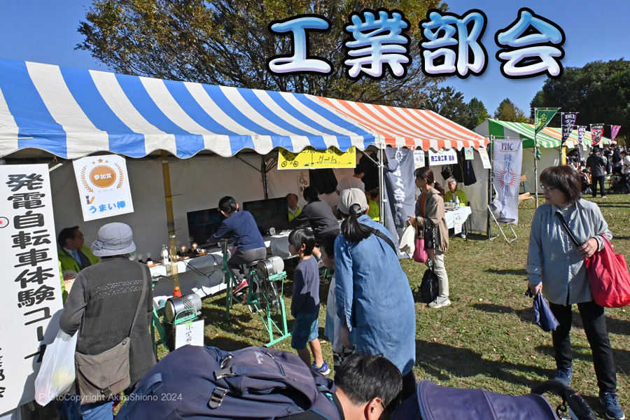 青年部販売の「特製チャーシューと工業部会の発電自転車コーナー
