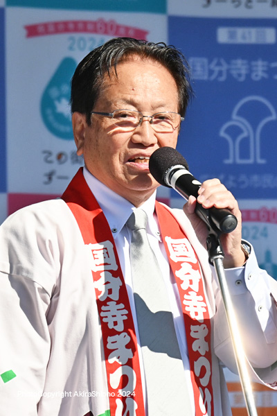 令和6年で41回目となる市内最大の“国分寺まつり”が開催されました。今回は国分寺市制60周年と新庁舎が間も無く完成ということで、11月の3日(日)と4日(祝・振休)の2日間開催となりました。模擬店は揃っていましたが、1日目は昼に開会式が行われ、後にステージでは「市制施行60周年記念ライブ」が観光大使である荒川ケンタウロスによって行われました。 翌日の4日のステージでは恒例の各市民団体による、各種ダンスなどが行われました。野外では、円形広場の周囲の道を利用して、演奏・行進、民謡流し、サンバ・阿波踊りなどの各種パレードがおこなわれました。