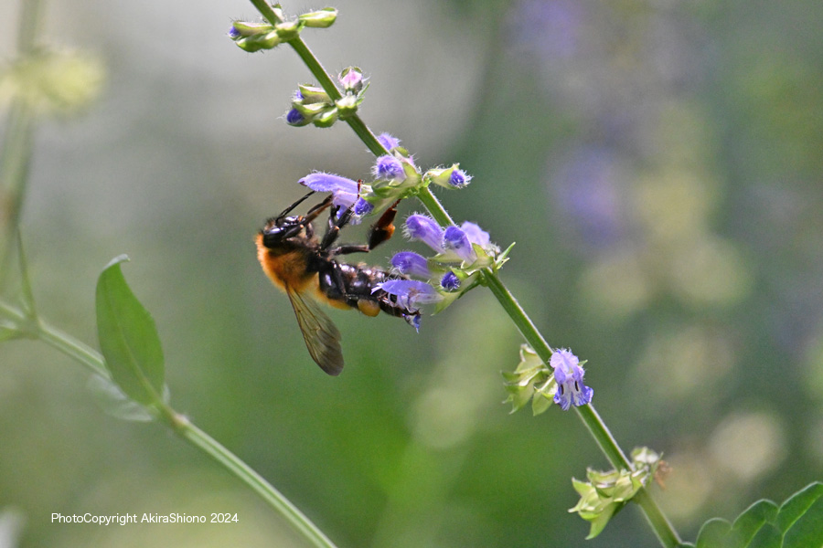 花の蜜を求めて飛ぶトラマルハナバチ