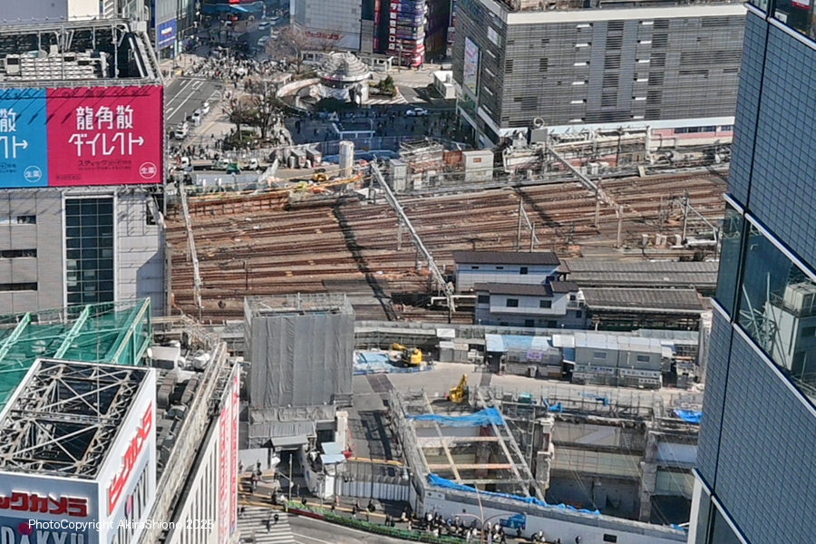 新宿ビックカメラ小田急ハルク前のペデストリアンデッキから見た景色とロータリー正面から見た建設現場