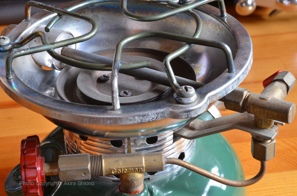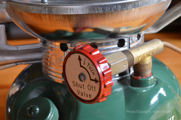 U.S.A500系 トップへ ![]() Coleman500は大きめのガソリンストーブで、真っ直ぐなジェネレーターの延長にバルブホイールがあります。