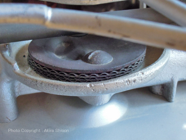 ![]() メカ丸出しのデザインでバーナー部は鋳物で作られています。右はバルブホイール