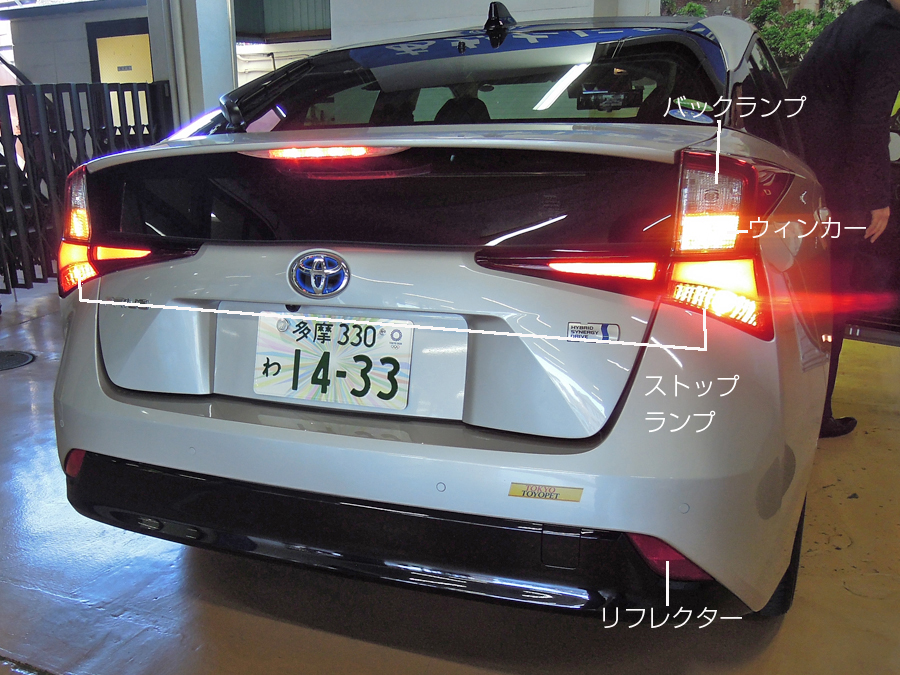 ![]() 消灯時のリアビューと消灯時のリアランプ周りでサイドにリフレクターがあります。 |