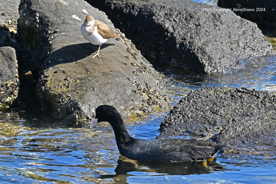 ここで出会えた野鳥は、イソシギ、オオバン、ハシビロガモ、カワウコサギ、ツグミ、ヒヨドリなどでした。池の畔の葦原には、ウグイス、オオジュリンに出会うことができました。