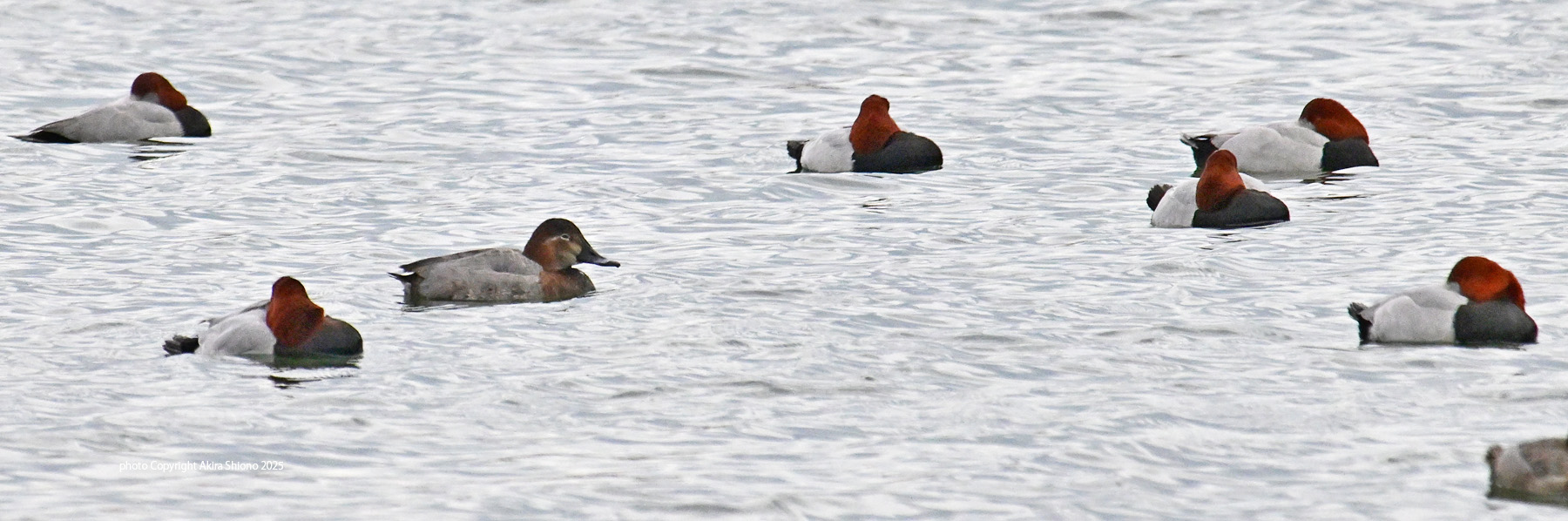 HoshihahajiroGroup_TKYP251221 渇水した池の隣の潮入の池にはホシハジロなどのカモ類が戻ってきています。