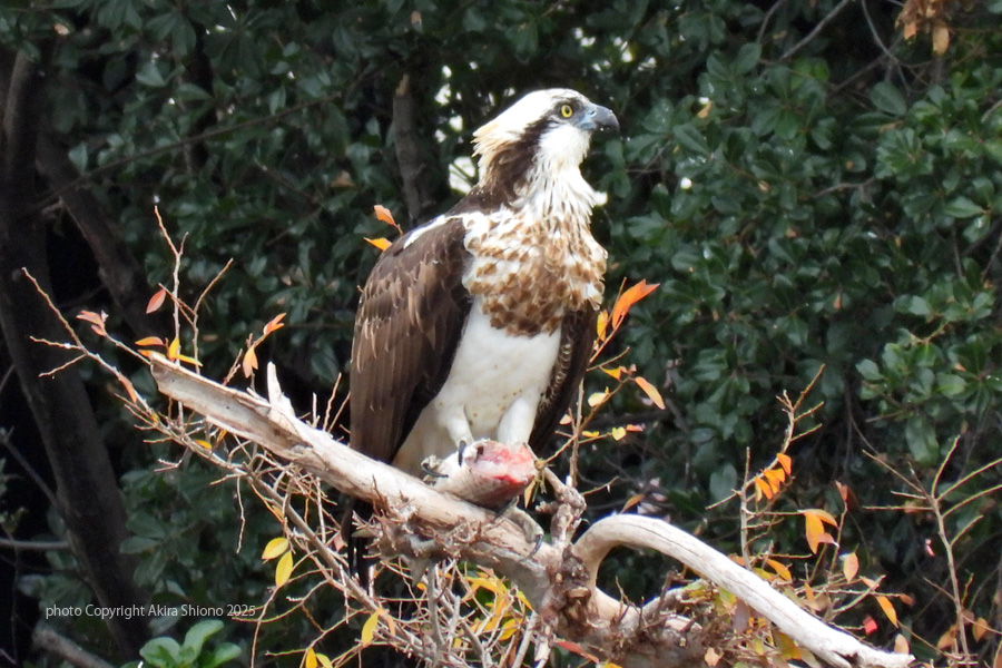 約100m先の対岸の安全な場所で獲物を食べるミサゴ  撮影:NIKON COOLPIX P1100 3000mm相当