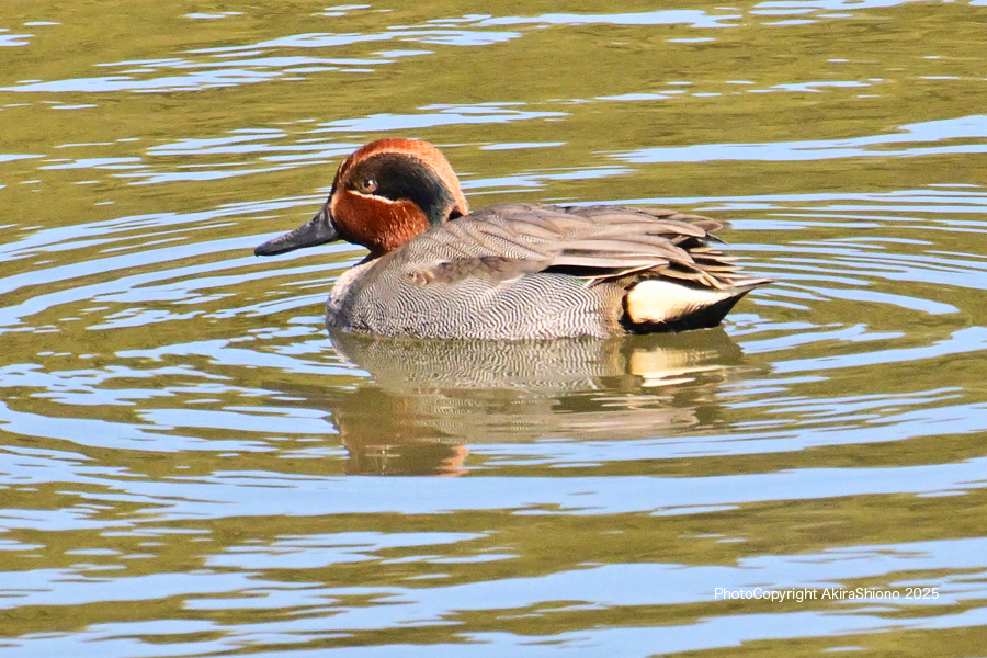 自然観察園内の奥の池では、池を進む複数羽のコガモを確認しました。観察小屋脇のカヤの林の中では暫く振りにオオジュリンの姿を撮影できました。