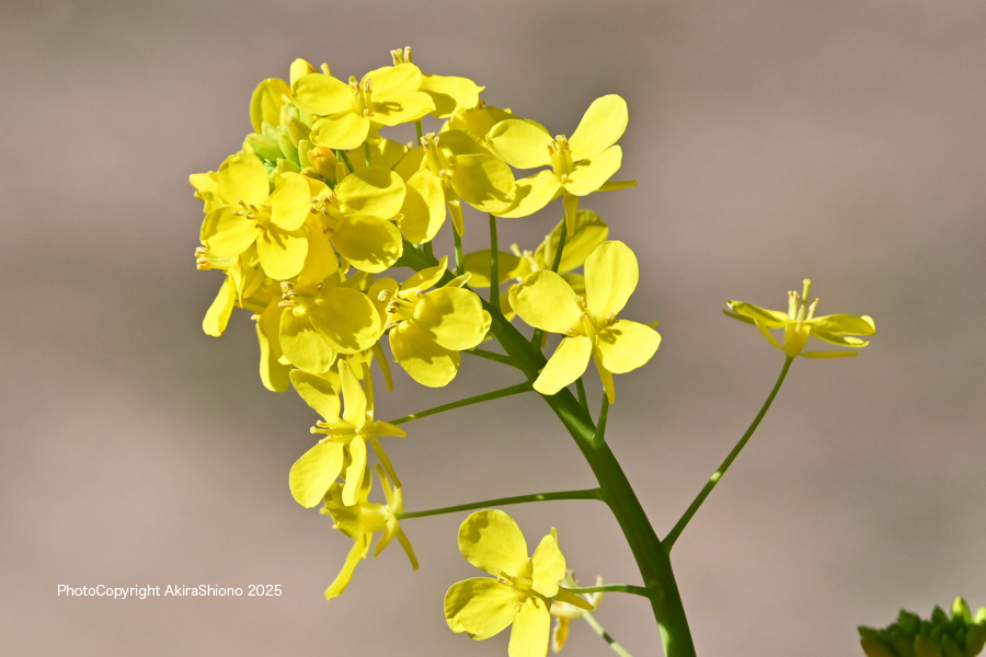 2月中旬に入りました。自然観察園を回ると所々にスイセンが咲いていましたが畑には鮮やかな黄色の菜の花が咲いていました。他に気付いた植物は放射状に広がるヤスデの花くらいでした。ほとんどの木々は葉を落として目立つのは紅梅でした。