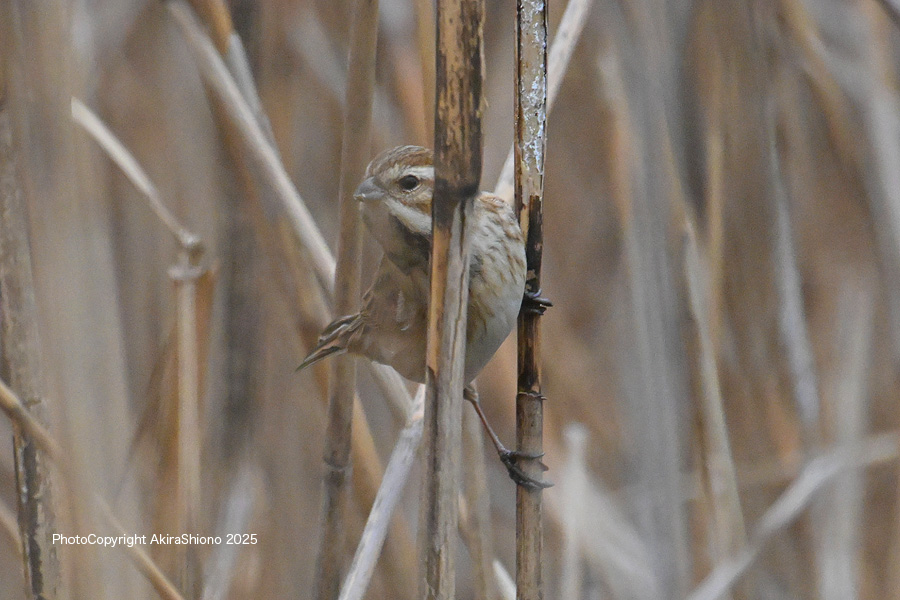 その他、久々にオオジュリンや葦の茎に潜った虫を探すメジロが撮影できました。