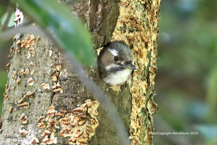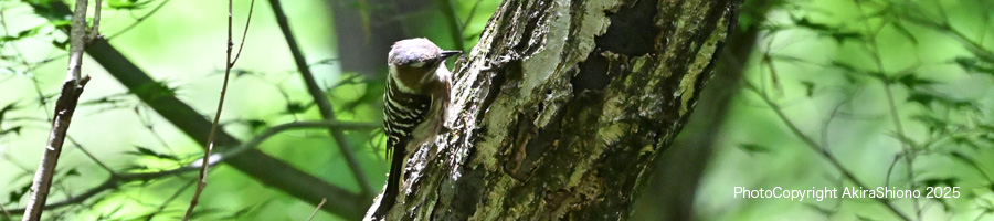 丘陵の森林では、ウグイスの鳴き声とガビチョウの鳴き声が響き渡っていました。しかし姿を見つけることはできませんでした。公園内を歩き回っていると同年代の方にコゲラの巣があると教えていただき画像に収めました。