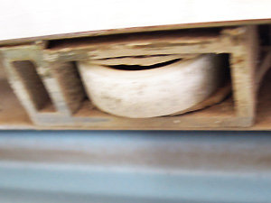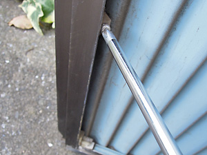 雨戸は、台風などの豪雨や強風から窓からの雨水や風、または砂ボコリなどから室内を守ってくれています。 MEMO: 雨戸用の戸車は、30年越えの家の場合部品の入手が困難と思われます。雨戸用の戸車は、雨戸の下のフレームに四角い穴があいていて、そこにはめ込んである場合が多いようです。購入時は必ずサイズを計ってからお買い物に行ってください。 修理開始/戸を外します トップへ 雨戸は外からカンタンに外れないように、内側にストッパーで止められています。雨戸のストッパーは、雨戸裏側の下の左右にネジがあり。そこを緩めるとストッパーが上がってきます。左右のストッパーを緩めるて、室内側から雨戸を持ち上げて外側に押し出すと外れます。2人いるときは外から外れた雨戸を受けてもらうと楽に作業が出来ます。1人の場合は外れた事を確認後、外に出て、外側から雨戸を持ち上げて取りはすします。 戸車を滑らかにします トップへ 取り外した雨戸の上下を左右に向くように、地面に置きます。指で回転状態を確認します。引っかかる場合は、CRC-556等かパーツクリーナーを噴射して、回転を滑らかになるまで回します。 引きずりの修理と戸車の高さ調整 トップへ