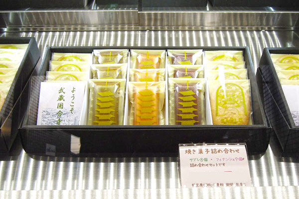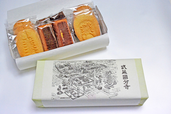 ![]() 写真左−当時の「武蔵国分寺」のセットフィナンシェ4,サブレ6入り 写真右−武蔵国分寺の七重等・鐙瓦・文字をかたどった当時のパッケージ