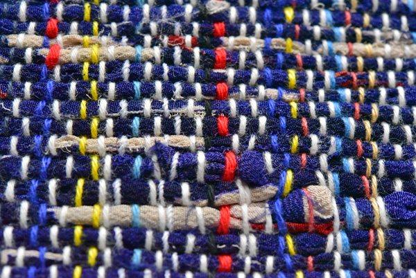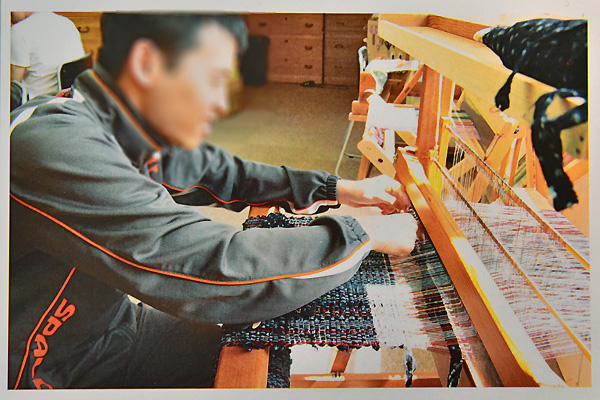 左ー風合いがソフトで適度が厚みがある裂き織りのランチョンマット。 右ー織り機を使用して、折り目一つ一つを織っていきます。
