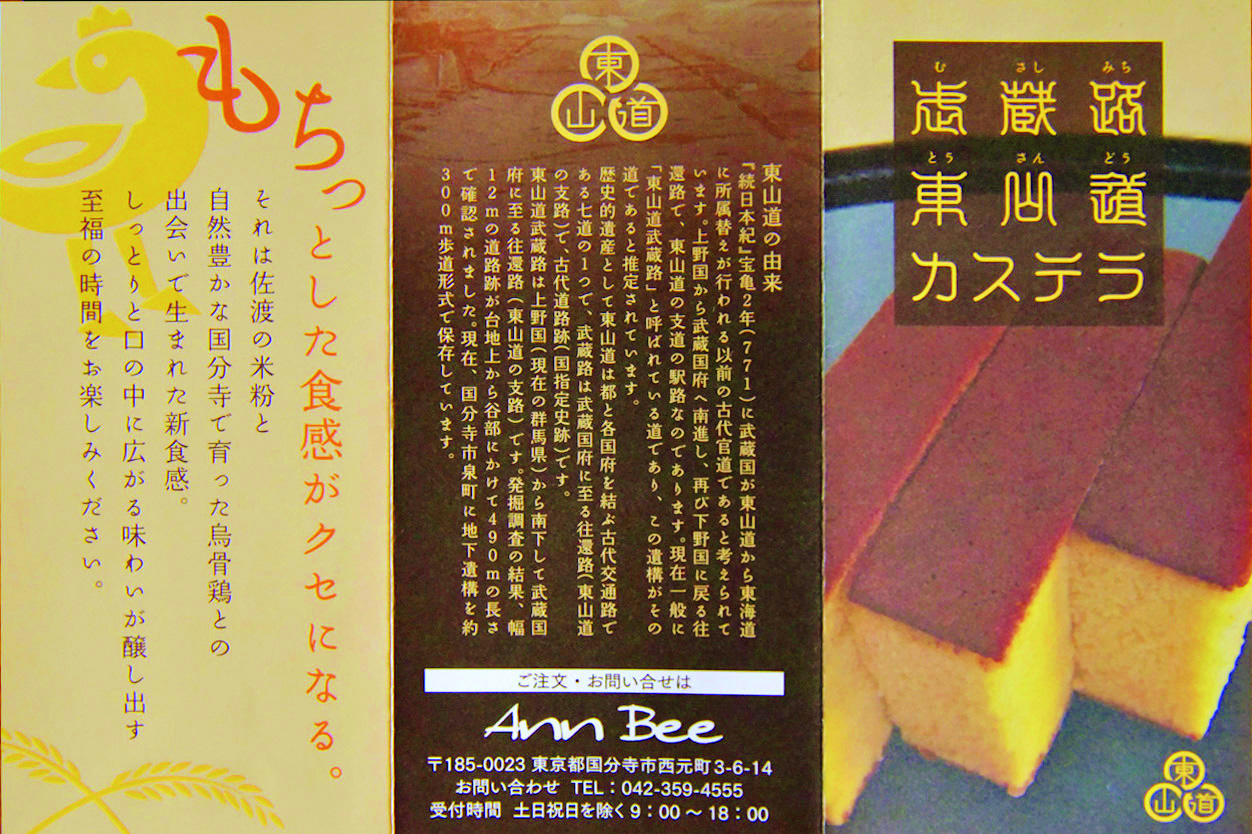 ![]() 左ーのパッケージ内には『武蔵路東山道カステラ』と書かれています。 右ーカステラの上面には『ぶんじほたるホッチ』の焼印があります。 *1 ぶんじほたるホッチは、タツノコプロの吉田すずか氏のデザイン 材料:卵[国分寺産烏骨鶏卵(小林養鶏場)]、佐渡産米粉、米飴、蜂蜜、白双糖 【商品のお問い合わせ】 AnnBee TEL: 042−359−4555 AnnBeeのお店 トップへ