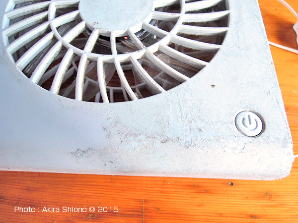 左の写真は、途中の状態で、キレイになっているのがハッキリ分かると思います。 同じファンをお持ちの方は、ついでにファンの掃除をしてはいかがでしょうか。裏に4本あるネジで止まっていますので、これを外せば分解できます。この時電源スイッチが外れますので、無くさないようにしてください。小さなブラシがあれば、カンタンにホコリが取れます。これで暑い時期のパソコンの冷却用に、気持ちよく使えると思います。 リンク: 扇風機の羽根の修理 USB扇風機の異音修理 自在アームUSB扇風機の修理 ベタベタ除去 CHSのIROIROサイト:人気サイト トップへ |