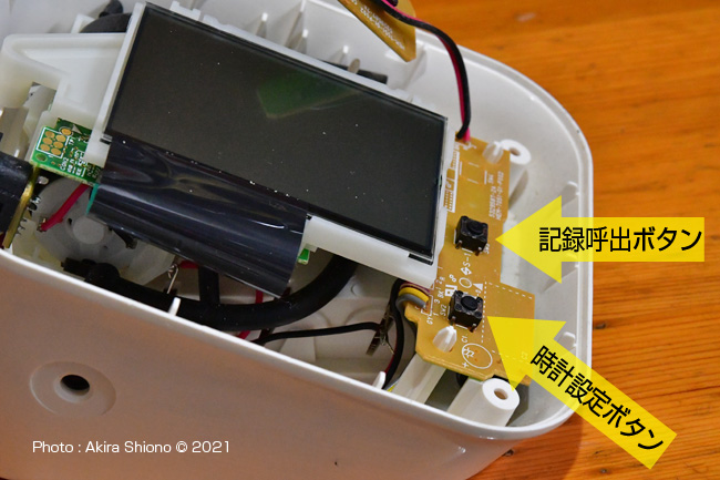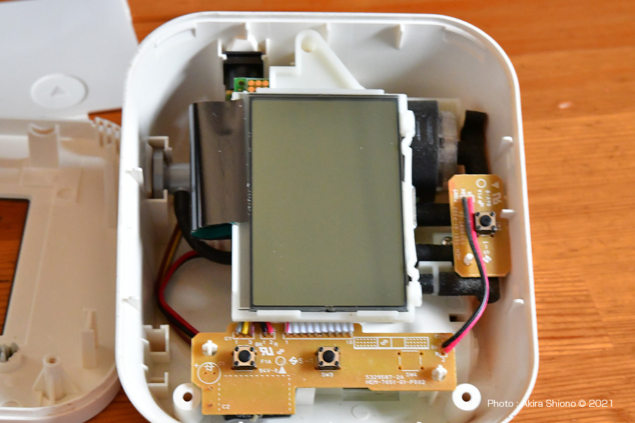 オムロン上腕式血圧計本体の上面パネルを外した状態