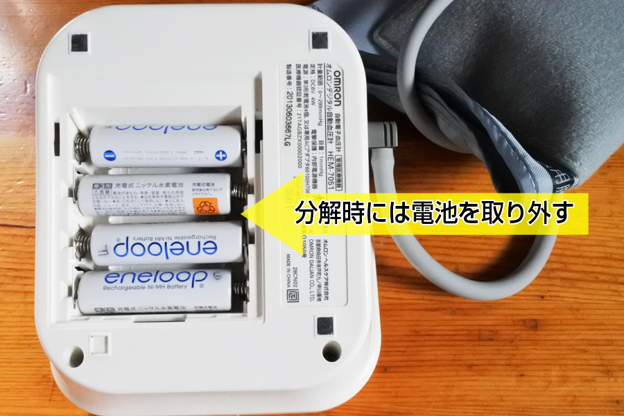 この血圧計は、上腕式の「オムロン デジタル自動血圧計 HEM-7051」です。認証日は2005年11月で製造日は2007年6月25日(第2版)となっています。現在から逆算すると製造後14年も経った製品でした。