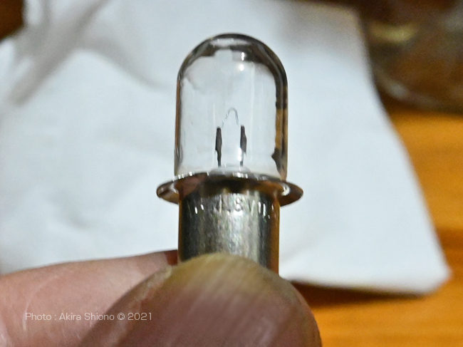 そのうち消耗品の電池交換の煩わしさから、タイヤの回転を利用して発電する発電ランプが発売されこれがかなり普及しました。しかし当時のダイナモランプは、接触部分のローラーが円筒に縦溝を入れた直系の小さいもので、これでタイヤの回転を利用して発電するにはかなり抵抗がありました。そんなことからペダルが重くなるので、夜間に無灯火で走る自転車が増えました。その結果夜間に点灯していない自転車は相手から見えないので、接触事故も増えました。 乾電池用フィラメントとLED トップへ