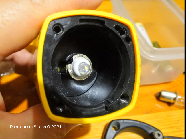 移 動: 夜間の保安部品 乾電池用フィラメントとLED 照射の光と範囲の比較 電球をLED球に交換 リンク: ハブダイナモに交換 切れた自転車の電球を交換する 1速チェーンカバー付きママチャリ 内装3段ママチャリ ディスクブレーキ仕様 タイヤ形状変更 自転車の電球を交換 ママチャリの不具合箇所解消!!