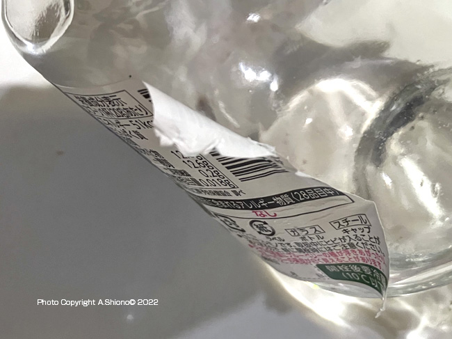 瓶詰の瓶には、印刷されたものと紙ラベルが貼ったものがあります。この紙ラベルは一旦濡らしてしまうと、溶かした紙の様にボロボロになってしまいます。これではキレイに剥がすのは困難になってしまいます。 空瓶の粘着紙ラベルを剥がす トップへ