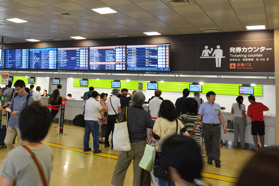 ![]() 左ーバスタ新宿の4階のインフォメーションセンターと左奥が搭乗口 右ーチケットカウンターは対面式になっていて安心です。