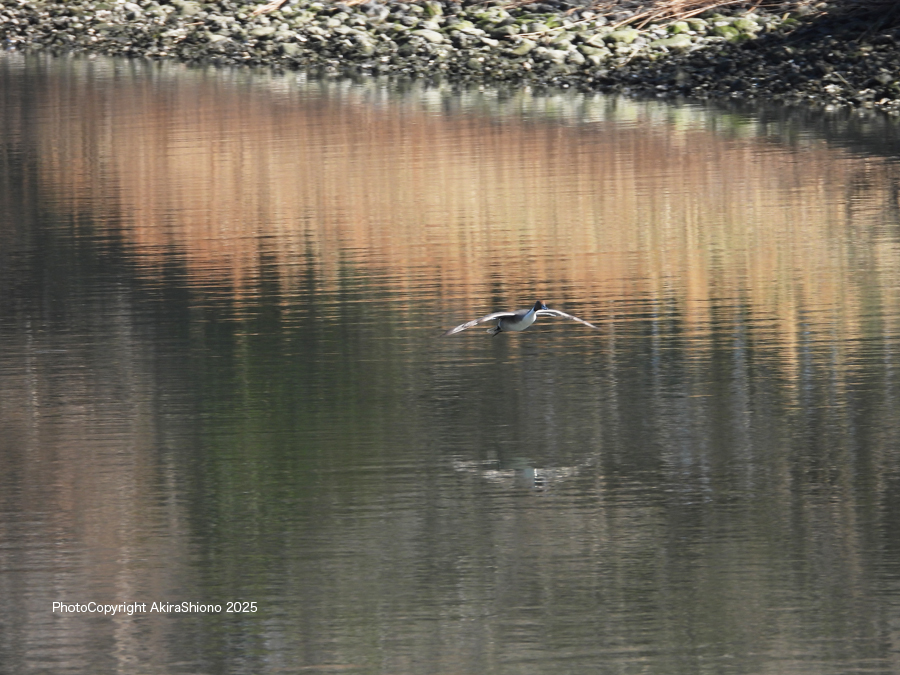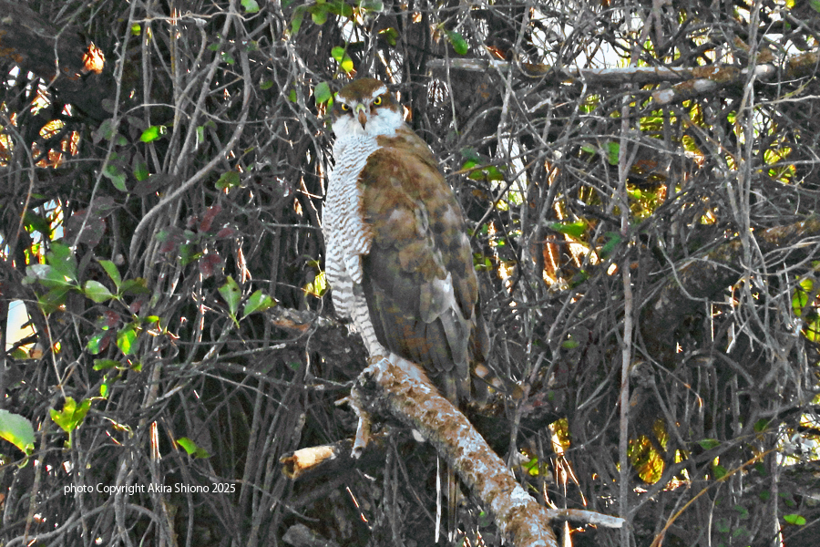 対岸の枯れ木の枝でミサゴの獲物を隙あらばと狙うオオタカ 撮影:NIKON COOLPIX P1100 3000mm相当 三脚撮影の必需品:LIM'S TripodPlate トップへ