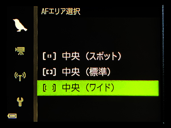 Zシリーズでは、コマンドダイアルで出来た絞り設定が、P1100では全く違っています。絞り設定は、モードをA(絞り優先)・M(マニュアル)・マニュアル動画動画でのみ設定が可能となっています。モニター右にあるコマンドダイアルをまわすと絞り設定が出来ます。 独立している鳥モード設定画面