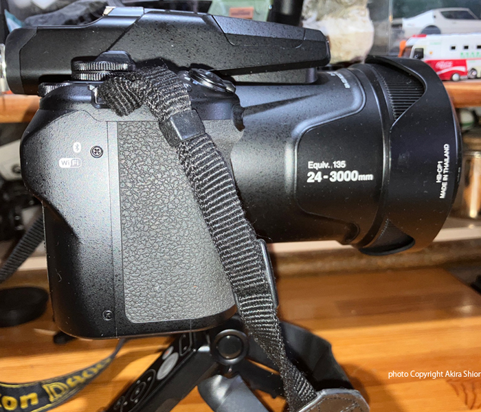 ここでご紹介したCOOLPIX P1100は、重さが1.4kgあり首に下げて長時間持ち歩くとじわじわと重さが応えて来ます。テレ端が3000mmまでいらない方はこのシリーズの下の機種のCOOLPIX P950という選択があります。 P1100とP950の大きく違うところは大きさだけでは無く、P950にはコントロールリングがレンズ左側にあるローラーになっています。画像にはありませんがポップアップフラッシュがP1100はリンク式で高く上がるのに対して、通常の様に持ち上がるスタイルになっています。大きさコンパクトになり重さが400gも軽くなっています。外観では画像にはありませんが、レンズフードの形状が違います。