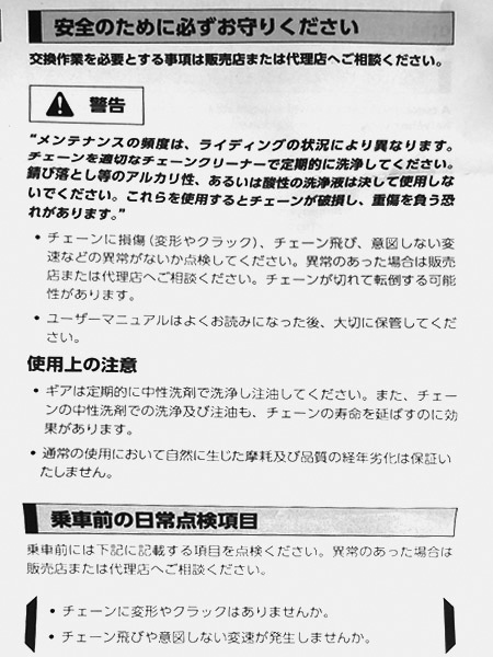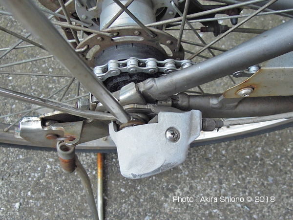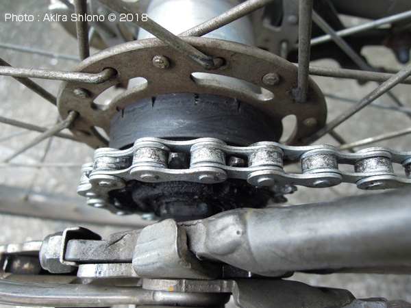 ![]() チェーンはスプロケットに無駄なくフィットしました。車軸のナットを締めて変速機カバーを取り付けます。