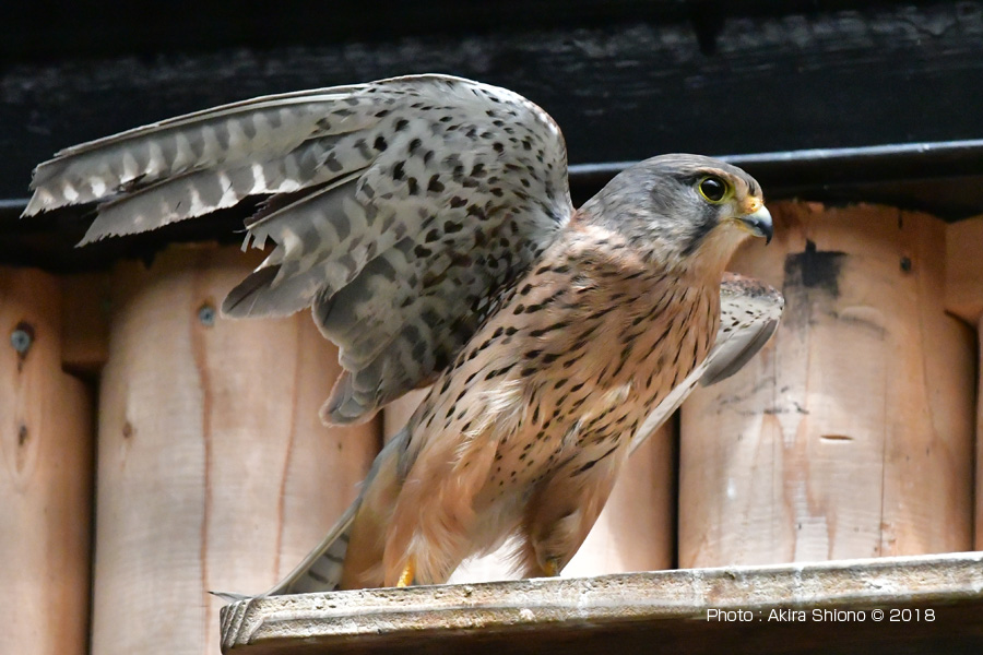 チョウゲンボウは、ハヤブサ目ハヤブサ科ハヤブサ属の野鳥です。大きさは全長が約30cm位の比較的小型の猛禽類です。ハヤブサ科ということで、クチバシは動物も食べられる様に鈎状に曲がっていますが、目はくりっとして可愛らしい顔をしています。原野・河原・農耕地や地域により住宅街での目撃もあるとのことです。 ![]() 今にも飛び立ちそうな、井の頭自然文化園の和鳥舎のチョウゲンボウ。