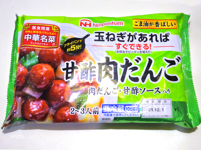 手軽に中華料理が出来る様に、「CookDoの中華シリーズ」を使って作っていました。最近、必要な材料が少なく、味も程々でスピーディに完成する、このNipponHam 中華名菜シリーズです。今まで使ったのは、玉ねぎ1つでできる酢豚と八宝菜とエビチリです。しかし、他のシリーズが出ていることを知りました。同じ様に用意する材料が少なく調理できる「甘酢肉だんご」でした。 【NipponHam 中華名菜:甘酢肉だんご 2〜3人分】
