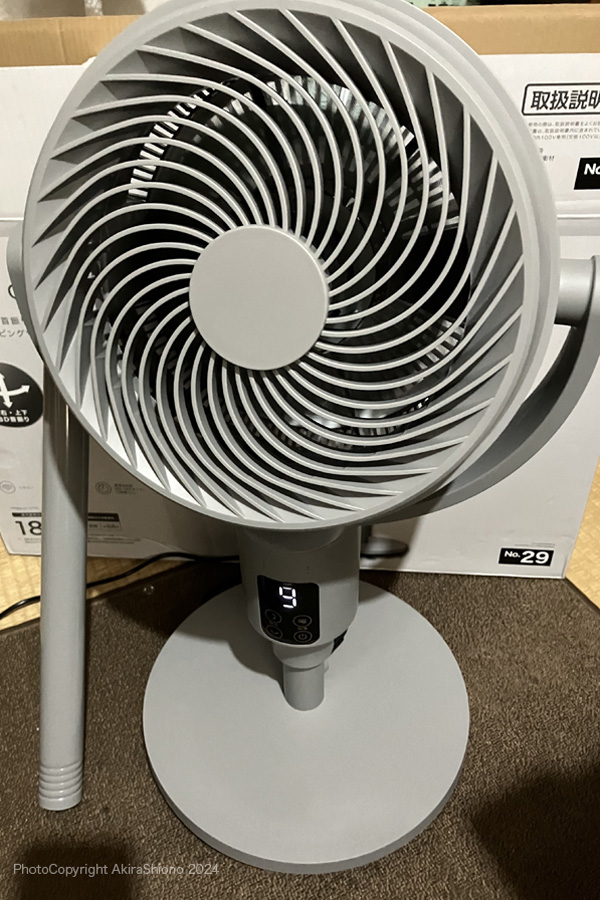 かなりお気に入りのサーキュレーターですが、残念な所は、上下首振りで角度を調整してくても、動作は一旦天辺に向かい降りてくる様になっています。例えば今仕様の角度より幾分下げたい場合でも、操作ボタンを押すと下までお降りてくるまで25〜30秒近く待たなければいけません。角度調整が3種類できる様なのですが、なぜだか天辺に向かってしまいます。