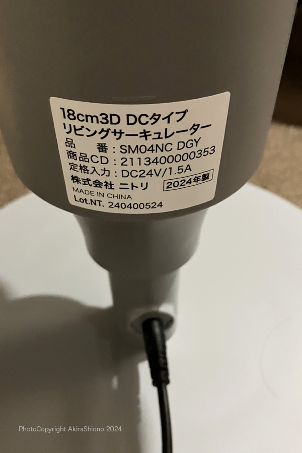 先述の円形のベースは表面がプラスチックですが、内部は底面から見ると鋳物のような素材なので、サーキュレーター部をねじ込むと安定感があります。