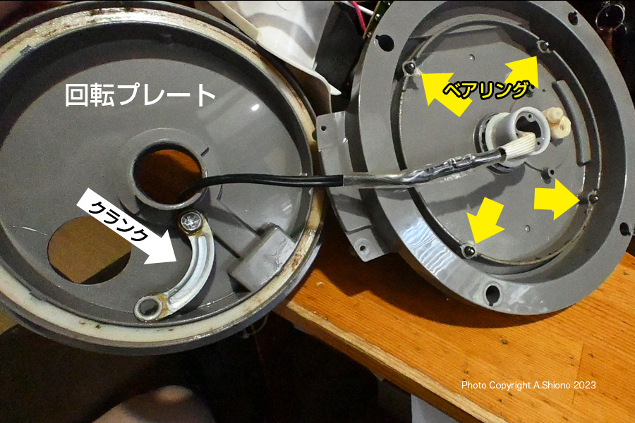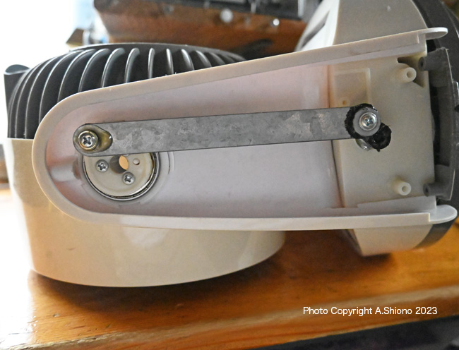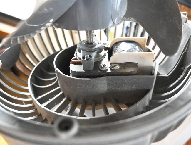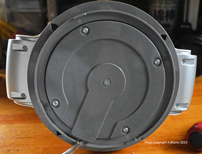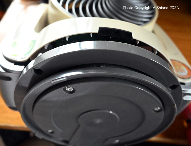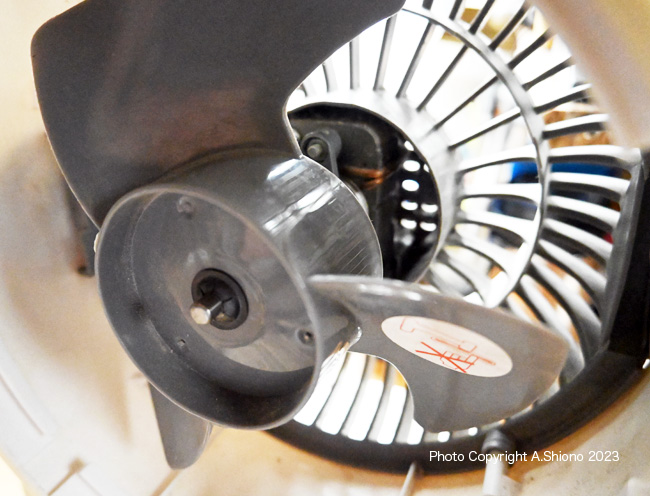 サーキュレーターは四季を通じて役立つ電化製品です。こんなことから年間を通じて使用する為に木になる箇所が出てきます。購入してからもう少しで8年を迎えます。風量も多く強いことから、ファンブレードのエッジに綿ボコリが引っかかったり、ファン前後のガードに綿ボコリが引っ掛って塞がったりして送風に影響をして、送風に影響を与えます。こんなことから効率が落ちるので、気が付いたら綿ぼこりの除去・清掃は怠れません。 サーキュレーターの構造を確認するために分解 トップへ サーキュレーターの首振りノイズの発生源を確認する トップへ