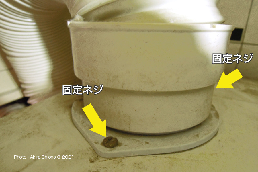 雨の日の洗濯は、乾燥機があると非常に便利です。この衣類乾燥機は、1985年5月に購入した「ガス衣類乾燥機:乾太くん」です。現在が2021年3月ですからすでに36年の月日が流れています。こんなに長く使えているのも、乾燥機を使う日は、雨の日など湿気が多くて洗濯物が乾かない日のみだからだと思います。 衣類乾燥開始時に出る異音 トップへ 運転開始時に発生す異音は「ゴロゴロ・ゴロゴロ」というもので、モーターがドラムを回転させる「シュー」と室外に排気する音と全く違い、音量も大きく発生します。しかし、衣類乾燥するために口火に点火してメインバーナーに点火するとドラムが回り始めます。しばらくすると、熱が本体内に回ったのか、このゴロゴロ鳴っていた音が治ってきます。 分解するための下準備 トップへ 一般の衣類乾燥機は、洗濯物の湿気を排出する為にダクトが装備されています。 機能的に室外と繋がっているのはこのパイプダクトのみです。この機種では上部に2本のネジで取り付けられていました。プラスドライバーで外したネジは、無くさない様に元の取り付け穴に仮締めしておきます。