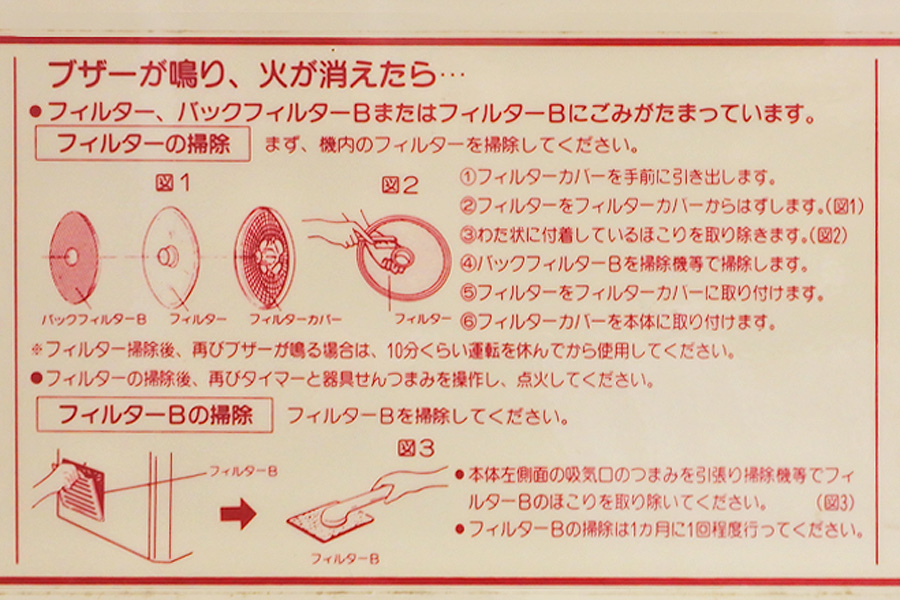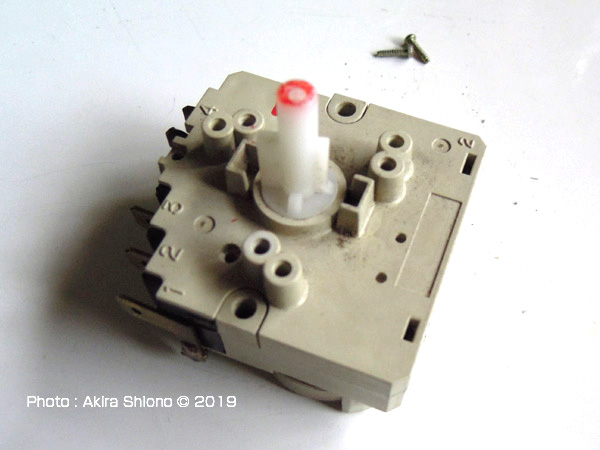 今回も乾燥機使用時に、ブザーが鳴っているのに気がつきました。またか…と思って加熱している燃焼部側に小型扇風機で風を送り冷却しました。こんな事を始終対応しているのは面倒なので「また分解掃除になるのかなぁ、大きいし大変そうだなぁ」と思いながら、ふと専用ラックの固定箇所を探してました。衣類乾燥機を下から取り外す手順を考えながら覗いて見ました。「えっ!・・・」今までは、本体添付の対策の説明書に書いてあった、燃焼部のスリットと左側面の吸気口と内部ドラム奥の3箇所のみと思い込んでいました。なんと固定している専用ラックと本体下部の1.5cmくらいの隙間にも吸気口があるのを見つけました。 故障したタイマーの状態を修理できるか見てみる トップへ キッチンタイマ-で代用