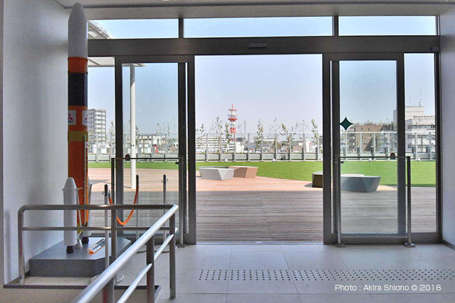 ![]() 「cocobunji WEST」5階のリオン広場(オープンテラス)への出入り口と西端から見た景色