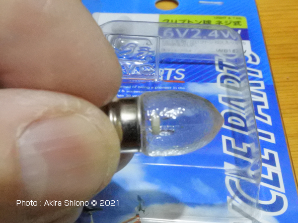 ![]() 切れてしまったランプは、6V,2.4Wのクリプトン球で同じものと交換します。