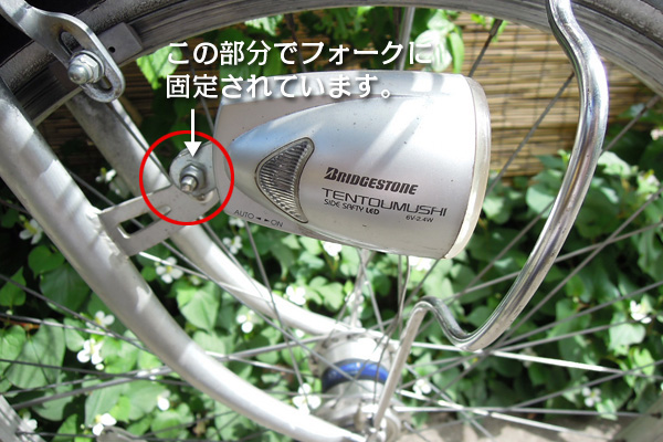 前輪交換の下見と準備 ▲top 以下は前輪のタイヤ交換の作業を表したものですが、ハブダイナモ付き自転車を元に構造を確認してみます。脱着のヒントとしてご覧いただけると幸いです。