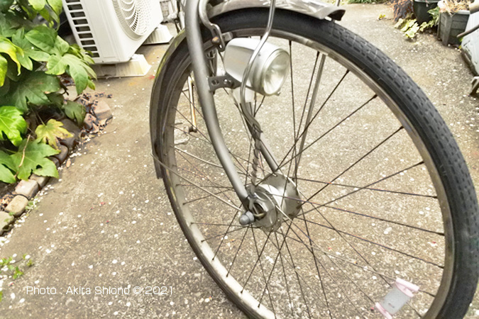この時発電機がタイヤの回転を電力にしている「リムダイナモ」タイプに乗っていらっしゃる方は、ハブダイナモ+LEDランプの交換をおすすめいたします。ペダルは軽くなるし、LEDは白く明るい光でとても見やすいです。