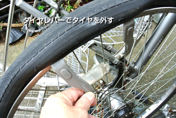 ママチャリのハブダイナモ付き前輪交換 ▲top 以下は前輪のタイヤ交換の作業を表したものですが、装着のヒントとしてご覧いただけると幸いです。