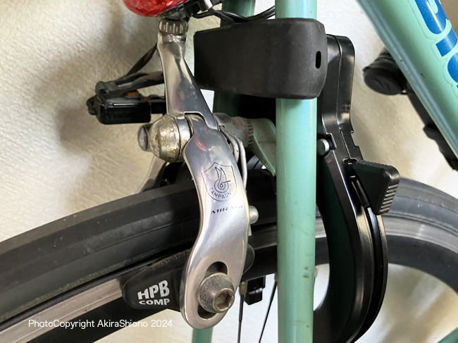 ちなみに手軽に乗れるスタンドをつけてあるロード「Binach WingMirage」は駐車時に手頃な鍵な見つからなかったので、ワイヤー錠を使っていました。しかし、この錠は長いワイヤーの端が輪になっていて、片側に鍵がついているタイプです。長さがあるので前後輪共の鍵掛けができます。しかし未使用時もフレームの一部に巻きつけていたり、取り外しや施錠がとても面倒でした。向きが違っていたりすると、引っ掛ってうまくロックが出来ずに2〜3分かかったりしていました。これはとても無駄な時間でママチャリのリング錠だったら2秒程度で施錠できます。 スピーディに開・施錠できるリング錠に交換 トップへ