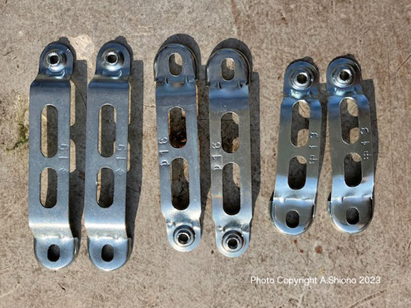 この交換する製品には、様々は太さのシートステーに合うように3サイズの金属バンドが付いています。一々サイズを確認するために巻き付けるより、以前使っていたバンドの長さに合わせるとカンタンに選べます。 サイズの合ったバンドを本体に通す トップへ