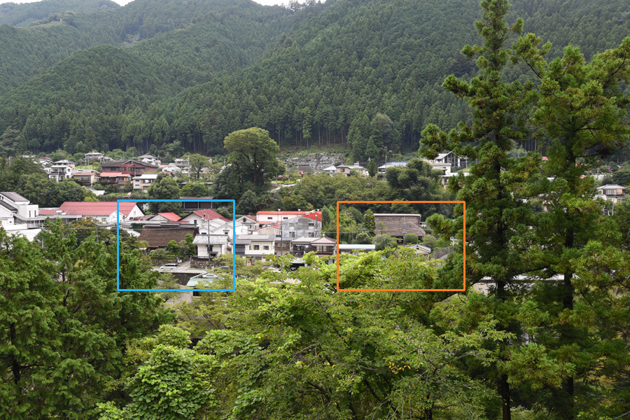で寒山寺駐車場から沢井駅方面を見た景色。 FX用のAF-S24-85mmf/3.5-4.5G VR ISO400 f8 1/200 24mm +0.7