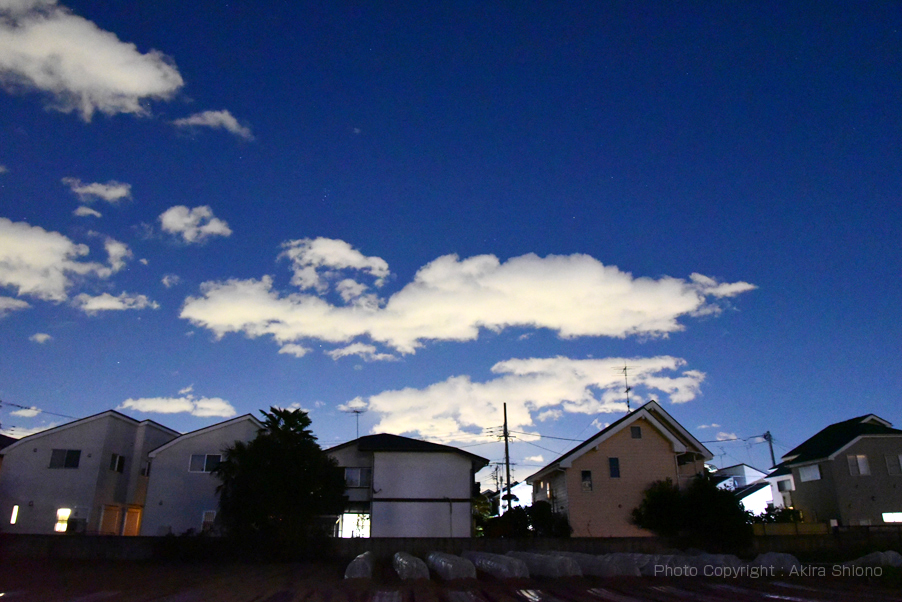 ![]() 使用レンズ:VR24-85mmf/3.5-4.5G〕左ー ISO 6400,1/60,f8 右ー ISO 6400,1/50,f8 ISO12800オーバーでの撮影(夜と日中) トップへ 24-85mm 左の写真は夜の空を撮影した物です。撮影は手持ちですが、電柱にカメラを固定してライブビュー撮影をしました。感度は12800に対して約0.7増感しました。シャッタースピードが1.6秒でしたのでぶれが出てしまい、3枚撮影した内の1枚です。天気の良い夜空でしたので、夜空に浮き立つ雲、星々飛行機のライトが写っています。 上写真ーD750+VR24-85mmf/3.5-4.5G ISO 12800 , 1/1.6秒 ,f9, 露出+2.0段
